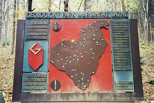 raji lázeňského města nabízí přehled o geologické stavbě a rostlinných společenstvích Slavkovského lesa.Stezka se nachází ve svahu bukového lesa nad budovou Městského muzea. Provází expozicí ve volné přírodě ve svahu lesoparku, kam byly umístěny známé i vzácně se vyskytující horniny z vybraných lokalit Slavkovského lesa.